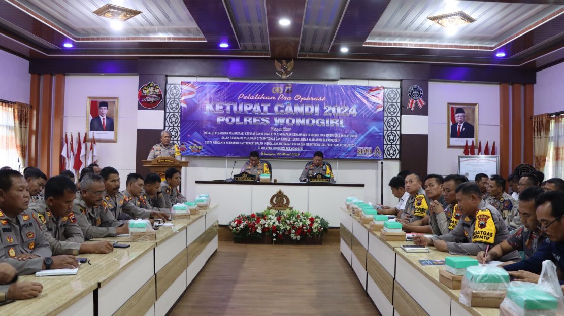 Polres Wonogiri menggelar Latihan Pra Operasi (Lat Pra Ops) dalam rangka Operasi Ketupat Candi 2024. Kegiatan dilaksanakan di Aula Sanika Satyawada Polres Wonogiri. Jumat (22/3/2024)