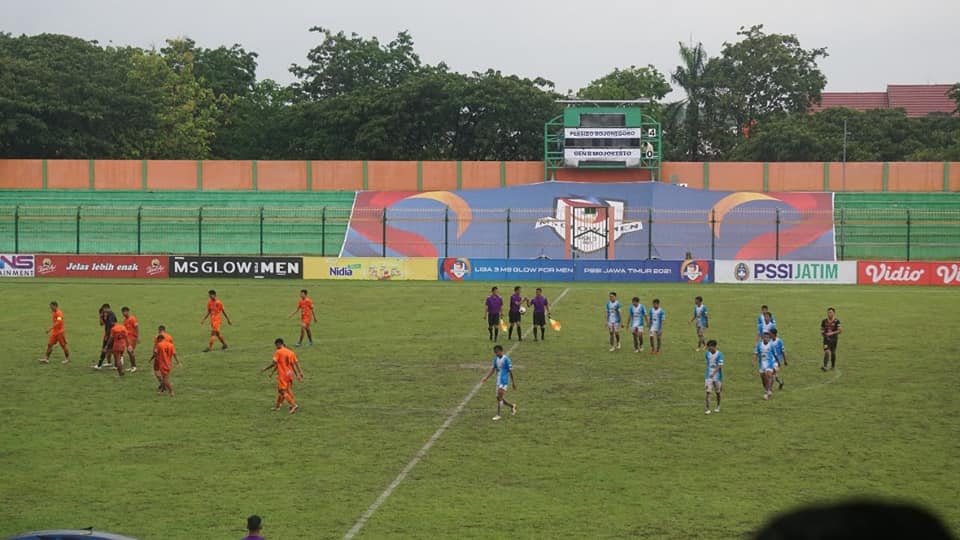 Pada babak pertama, Persibo berhasil menjebol gawang Genn B Mojokerto di menit 29 oleh Amar Fadzillah dengan nomor punggung 26. Dua menit setelahnya, Amar Fadzillah kembali mencetak gol di menit 31.Babak pertama berakhir dengan skor 2-0 di bawah hujan deras. Pada babak kedua, Gen B Mojokerto mulai menyerang pertahanan Persibo. Beberapa kali striker Gen B berhasil lolos dari lini belakang Persibo. Euforia pertandingan semakin memanas karena kedua tim saling membalas serangan. Di menit ke-49, Zardan Aroby menyerang melewati pertahanan Gen B dan berhasil menjebol gawang.