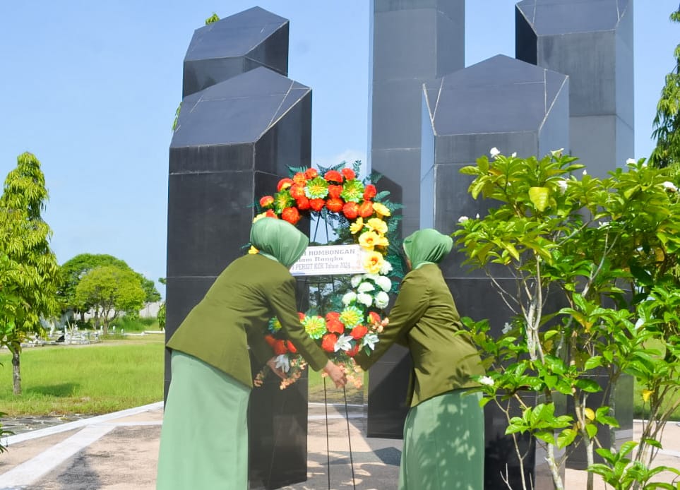 Dalam rangka menyambut Hari Ulang Tahun (HUT) ke- 78 Persit Kartika Chandra Kirana (KCK) tahun 2024, Persit KCK Cabang XXVIII Kodim 0813 Bojonegoro, melaksanakan ziarah dan Tabur Bunga ke Taman Makam Pahlawan (TMP) Kusuma Bangsa, turut Desa Ngumpakdalem Kecamatan Dander Kabupaten Bojonegoro, Selasa (2/4/2024).