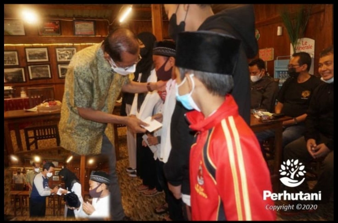 Perum Perhutani Touring Rebranding Wisata Alam bertajuk ‘Board Of Director (BoD) messages to frontliners’ bertempat di kawasan hutan wisata Mojosemi Park wilayah Kesatuan Pemangkuan Hutan (KPH) Lawu Ds menyerahkan santunan kepada anak yatim piatu di Magetan. Sabtu(13/11)
