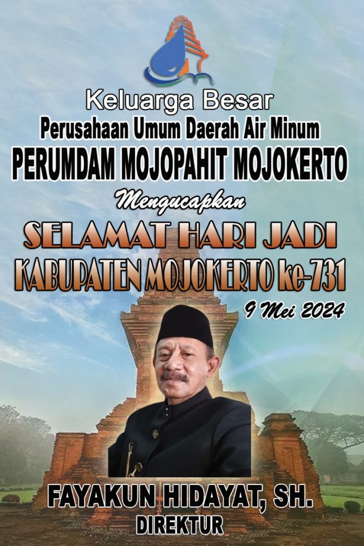 Perumdam Mojopahit Mojokerto Mengucapkan Selamat Hari Jadi Kabupaten Mojokerto ke-731