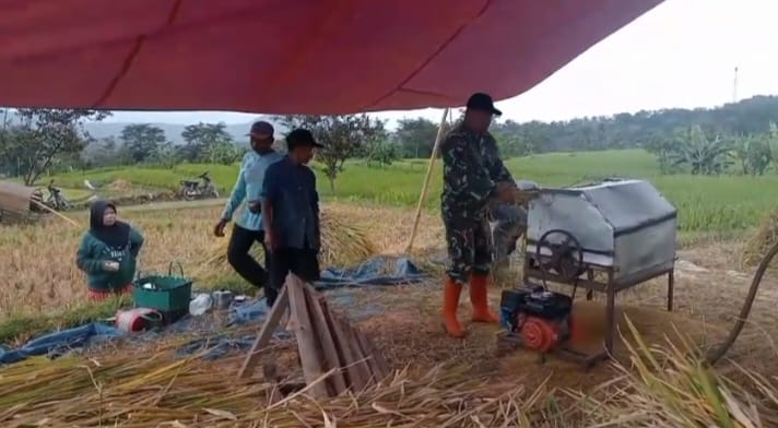Seperti hari ini dilakukan oleh Serka Yudik D Setiawan anggota Koramil Tipe C 0802/18 Sooko, Kodim 08902/Ponorogo yang membantu petani di Dukuh Puru Desa Bedoho Kecamatan Sooko Kabupaten Ponorogo yang sedang memanen padi di lahan pribadi.