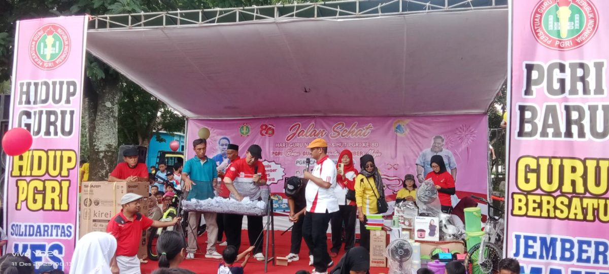 Hari kamis ( 11/12/2025 ) PGRI Kecamatan Patrang menggelar acara jalan sehat dalam rangka memperingati Hari Guru Nasional dan Hari ulang tahun PGRI yang ke-80, acara dilaksanakan di pondok pesantren Al Qodri Jember.