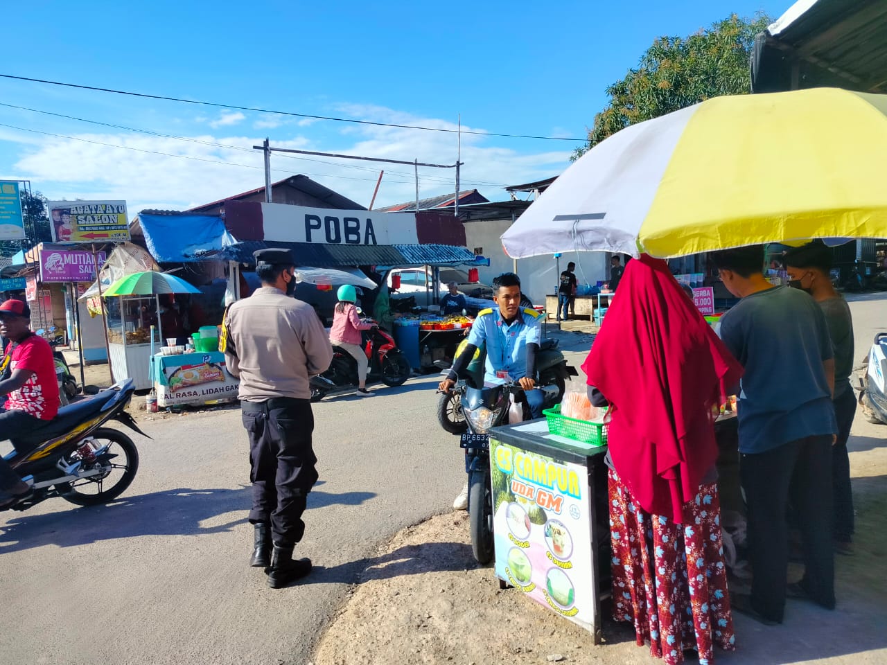 Piket patroli Polsek Sei Beduk melakukan pengamanan dan berikan himbauan kamtibmas kepada masyarakat yang sedang melakukan aktivitas jual beli di pasar tumpah pasar pancur dan bida ayu, Rabu (19/04/23) sekira pukul 17.00 wib s/d selesai.