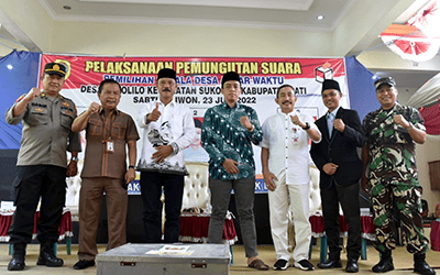 Bupati Pati Haryanto, Sabtu (23/7), memonitoring pelaksanaan Pilkades antar waktu di Desa Sukolilo Kecamatan Sukolilo. Secara keseluruhan di hari yang sama, pelaksanaan Pilkades antarwaktu juga digelar serentak di empat desa dalam empat Kecamatan, yang meliputi Desa Kembang Kecamatan Dukuhseti, Desa Sumerak Kecamatan Margoyoso, di Kec.Batangan di desa Bumimulyo , dan Kec. Sukolilo di desa Sukolilo.