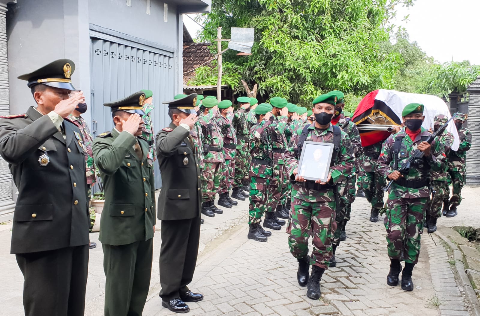 Komandan Komando Distrik Militer (Dandim) 0813 Bojonegoro, Letkol Arm Arif Yudo Purwanto, memimpin Upacara Pemakaman Jenazah Almarhum Serma Susanto, anggota Koramil 19/Bubulan, yang meninggal dunia karena sakit. Prosesi upacara pemakaman secara militer ini dilaksanakan di Tempat Pemakaman Umum (TPU) Nganti, Desa Clebung, Kecamatan Bubulan, Selasa (31/5/2022).