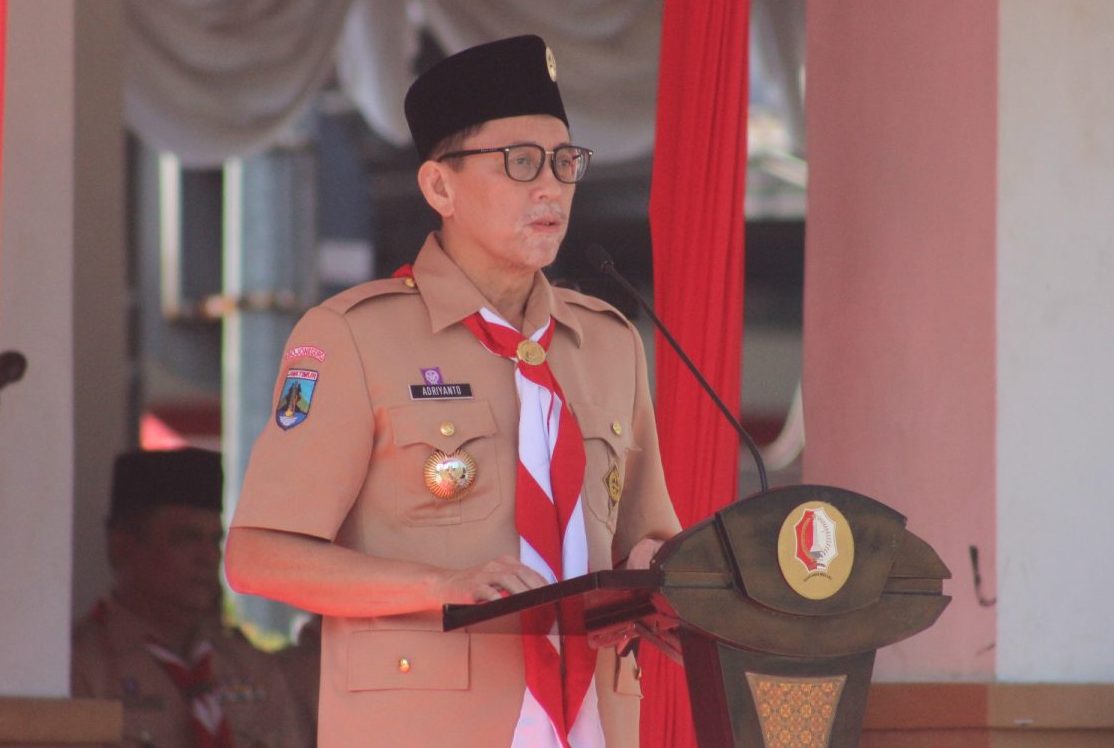 Pj Bupati Bojonegoro Adriyanto, dengan penuh semangat, memimpin apel pagi di halaman Pendopo Malowopati Pemkab Bojonegoro, Rabu (4/10/2023). Apel pagi rutin ini dihadiri oleh para aparatur sipil negara (ASN) sebagai bentuk kedisiplinan dalam menjalankan tugas.