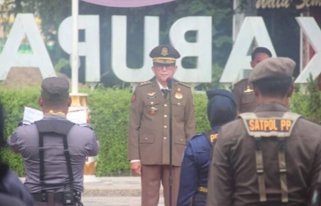 “Kerahkan seluruh kemampuan daya dan upaya dalam melaksanakan tugas membantu kepala daerah mewujudkan amanat UU dalam penegakan perda. Kemudian menyelenggarakan ketertiban umum dan ketentraman masyarakat serta perlindungan masyarakat,” pesan Pj Bupati Adriyanto.