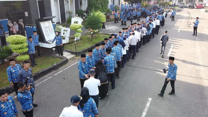 Acara yang dimulai pada pukul 08.00 WIB ini dihadiri oleh seluruh pegawai negeri sipil, kepala daerah, dan tamu undangan.