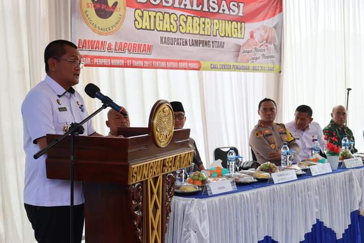 Penjabat (Pj) Bupati Lampung Utara, Drs. H. Aswarodi, M.Si., membuka acara sosialisasi Satuan Tugas Sapu Bersih Pungutan Liar (Satgas Saber Pungli) Kabupaten Lampung Utara yang bertempat di Aula Kantor Camat Kecamatan Sungkai Selatan, pada Rabu, 13 November 2024.