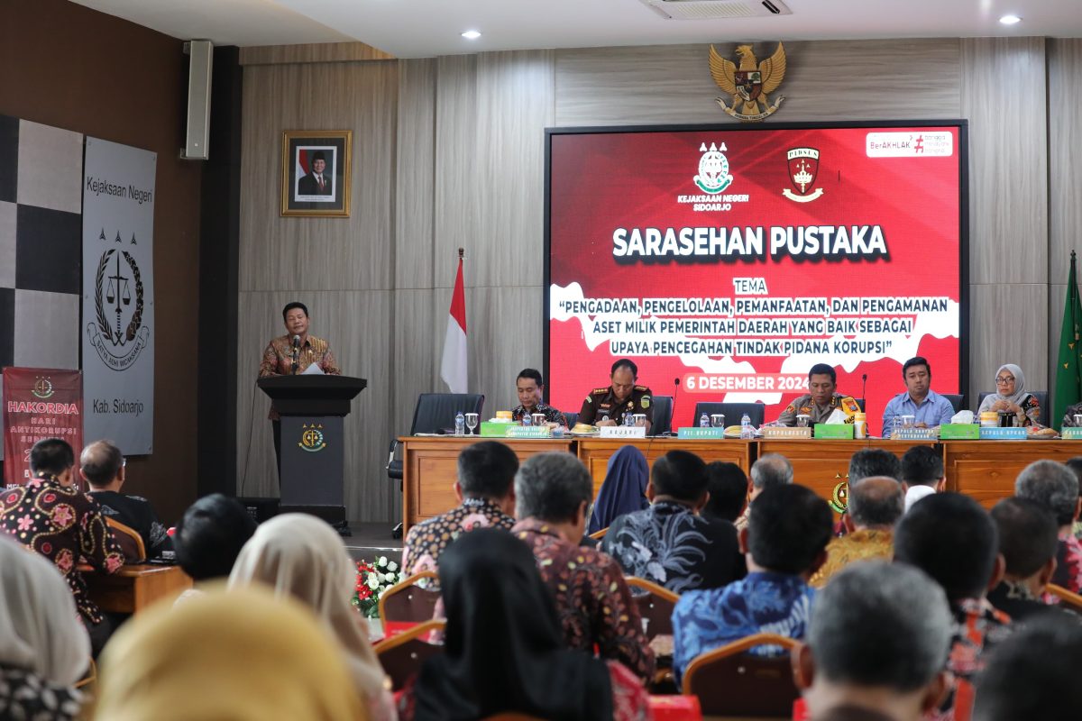 Ajakan dan penekanan pentingnya pengelolaan aset daerah secara transparan dan akuntabel disampaikan Plt Bupati Subandi di sela acara Sarasehan Pustaka dengan Tema “Pengadaan, Pengelolaan, Pemanfaatan, dan Pengamanan Aset Milik Pemerintah Daerah yang baik Sebagai Upaya Pencegahan Tindak Pidana Korupsi yang digelar di Aula Kejaksaan Negeri Sidoarjo, Jumat (6/12/2024).