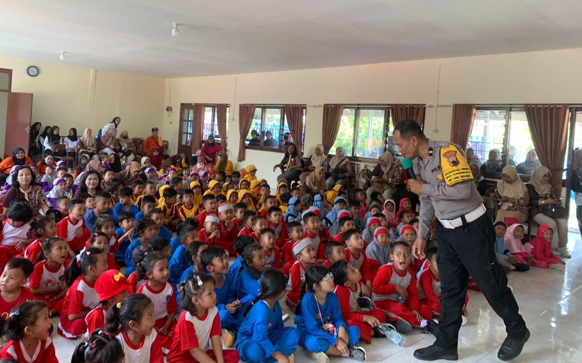 Sat Lantas Polres Wonogiri menggelar sosialisasi pendidikan untuk anak usia dini dengan kegiatan Polisi Sahabat Anak di TK Negeri Pembina Ngadirojo Kidul II, Kecamatan Ngadirojo Kabupaten Wonogiri. Rabu (30/10/2024)