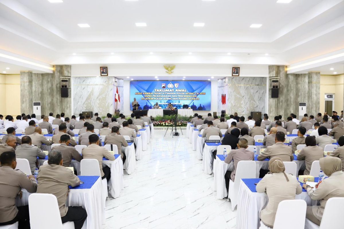 Kapolda Jawa Tengah Irjen Pol Ribut Hari Wibowo menegaskan bahwa fungsi pengawasan memiliki peran vital dalam memastikan arah dan kualitas kinerja organisasi Polri. Hal tersebut disampaikan saat membuka kegiatan Taklimat Awal Audit Kinerja Tahap II TA 2025 Aspek Pelaksanaan dan Pengendalian di Gedung Borobudur Mapolda Jateng, Senin (6/10/2025).
