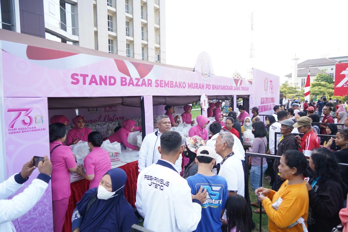 Sebanyak 2000 paket sembako murah diserbu masyarakat yang sudah menunggu sejak siang hari. Kegiatan Bazar sembako murah ditandai dengan Flag Off penyaluran paket sembako gratis oleh Kapolda Jateng Irjen Pol Ribut Hari Wibowo bersama ketua Bhayangkari deerah Jawa Tengah Ny. Diana Ribut Hari Wibowo beserta PJU Polda Jateng dan Pengurus Bhayangkari dearah Jateng.