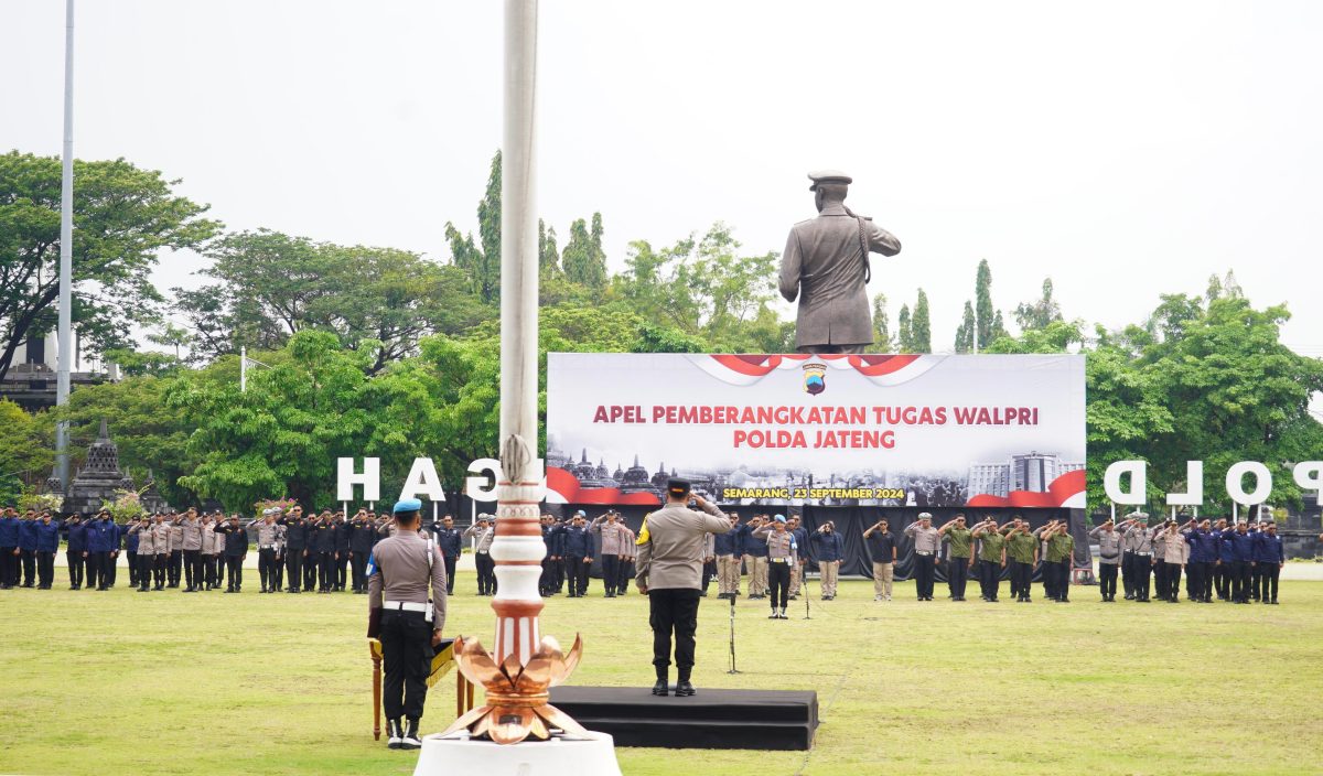Polda Jateng melepas keberangkatan personil Pengawal Pribadi (Walpri) yang akan bertugas mendampingi dan mengamankan para calon kepala daerah yang akan berkontestasi dalam Pilkada Serentak 2024 di Jawa Tengah. Pelepasan tersebut ditandai dengan Apel Pemberangkatan Tugas Walpri Polda Jateng yang digelar di Halaman Mapolda Jateng pada hari Senin, (23/9/2024) pagi.