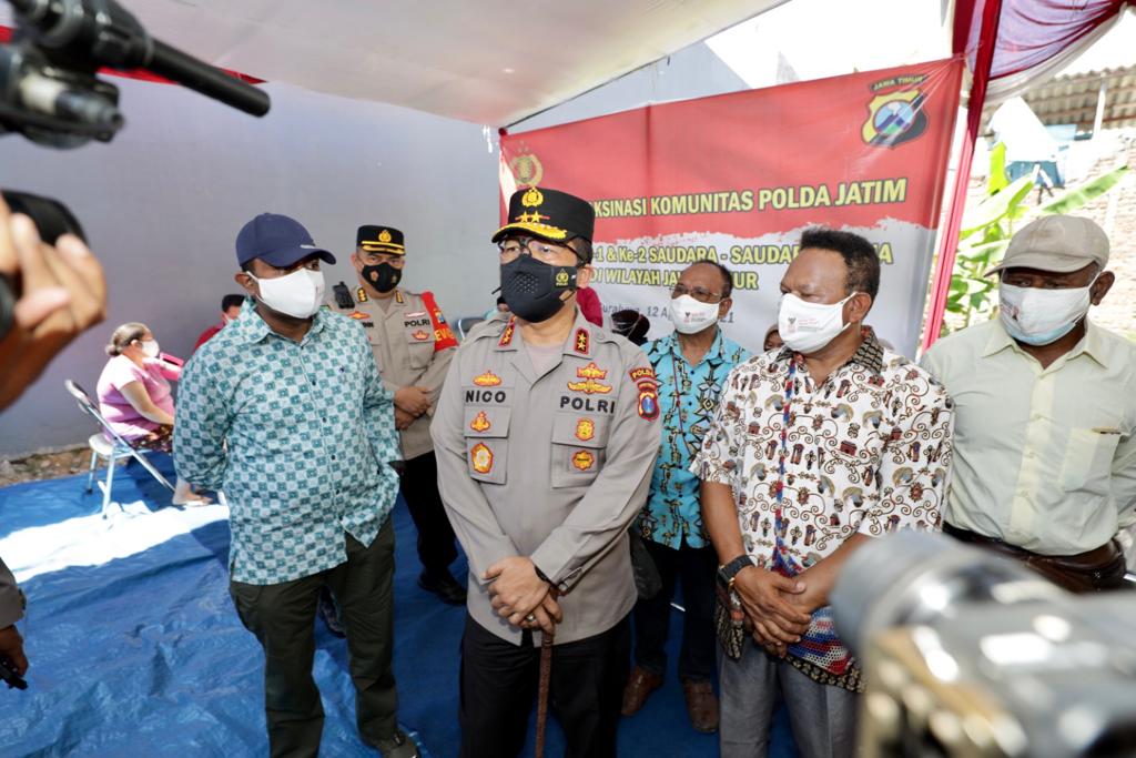 Kapolda Jawa Timur Irjen Pol Nico Afinta didampingi Pejabat Utama Polda Jatim dan Kapolrestabes Surabaya, melakukan pengecekan pelaksanaan vaksinasi Merdeka, pada Kamis (12/8/2021) kepada komunitas masyarakat Papua, di GPDI Lahai Roi Keputih kota Surabaya. Kegiatan ini bertujuan untuk mendukung program pemerintah, dalam rangka mencegah penularan covid-19 dan upaya mewujudkan herd immunity di Jatim.