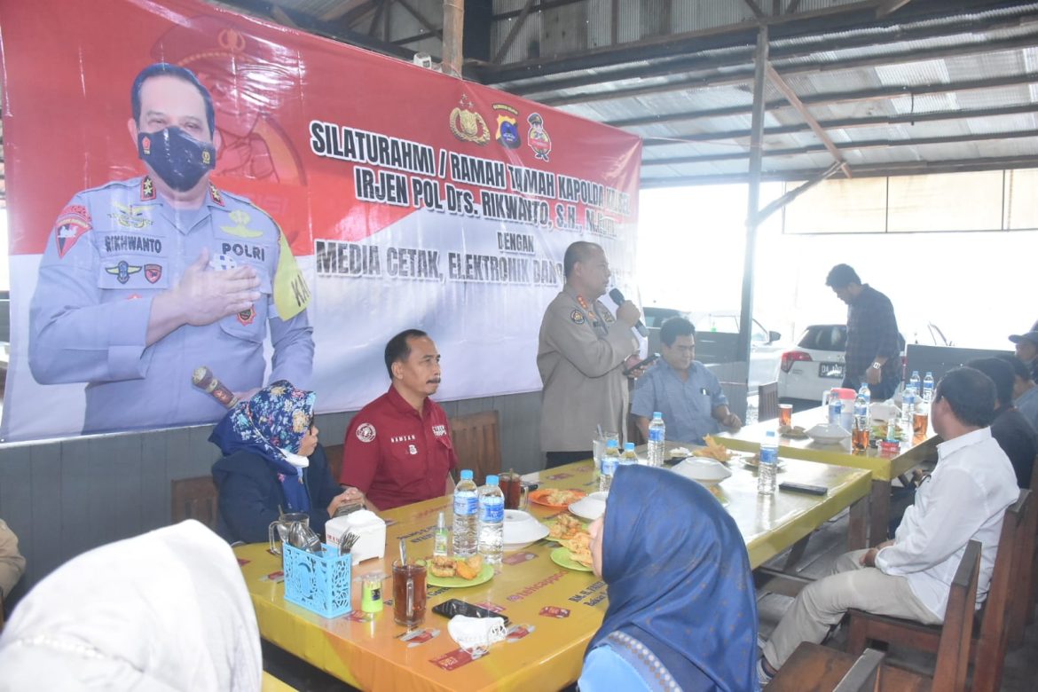 Kapolda Kalimantan Selatan Irjen Pol Drs. Rikwanto, S.H., M.Hum. bertatap muka dan silaturahmi bersama wartawan mitra Polda Kalsel bertempat di Rumah Makan Fauzan Banjarmasin, Rabu, (13/07/2022) pagi.