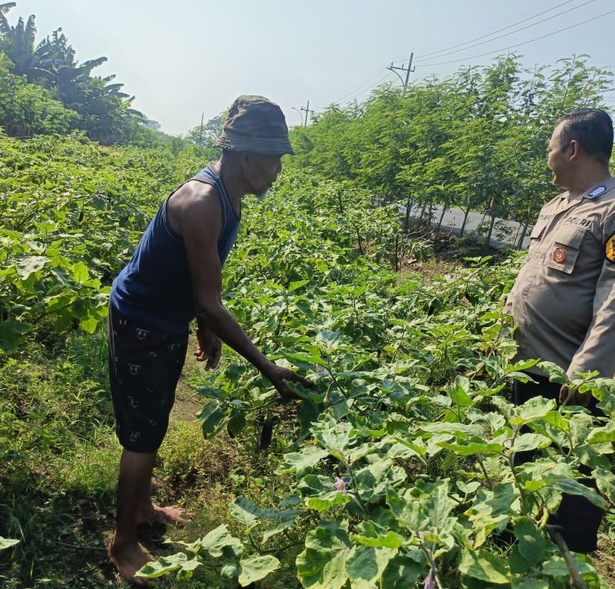 Dalam upaya mendukung program ketahanan pangan Polresta Sidoarjo Polda Jatim di tingkat desa, anggota Bhabinkamtibmas Desa Permisan Polsek Jabon, Aiptu Fatchur Rozi, melaksanakan giat pengecekan lahan pekarangan milik warga yang dimanfaatkan sebagai area perkebunan tanaman sayuran, di Desa Permisan, Kecamatan Jabon, Kabupaten Sidoarjo guna mewujudkan swasembada pangan.