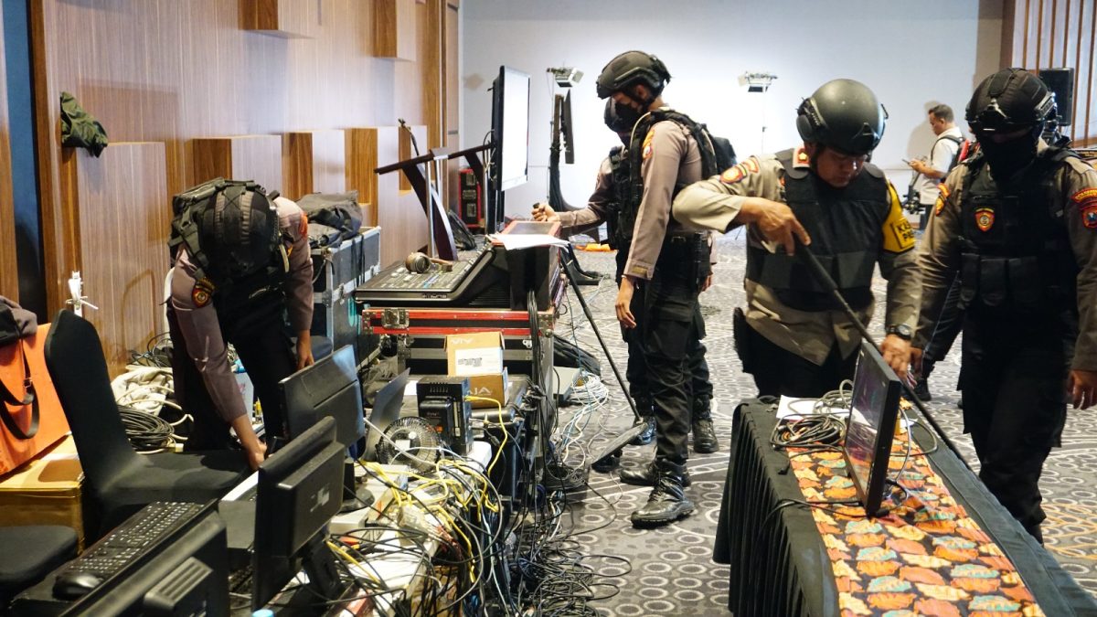Kemudian dilanjutkan dengan sterilisasi lokasi debat kedua Pilkada, baik di luar Aston Hotel maupun di bagian dalam khususnya ballroom yang dijadikan ruang debat Pilkada Sidoarjo 2024.