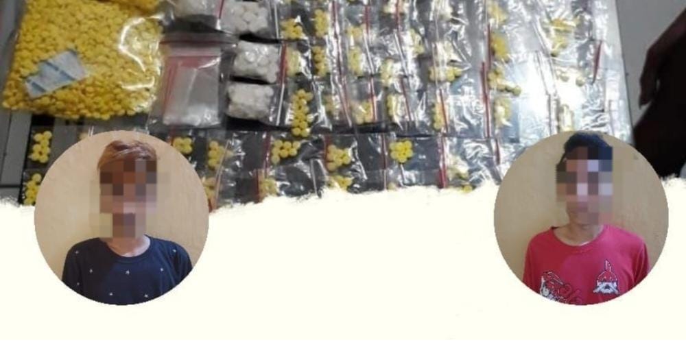 Keduanya diamankan, karena kedapatan melakukan pengedaran barang haram jenis narkoba berupa pil okerbaya jenis pil Trihexipenidly dan pil Dextrometrophan.