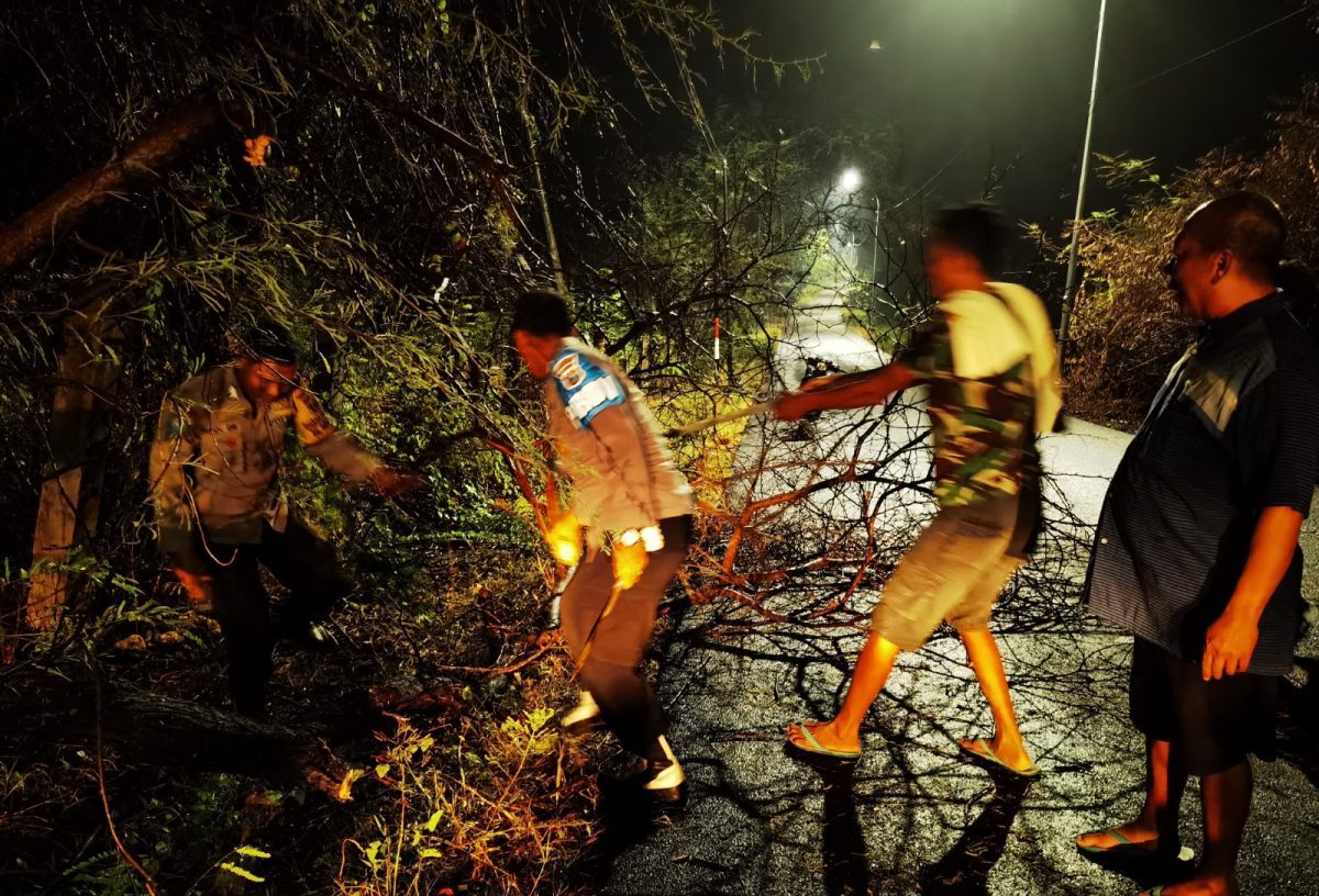 Polisi dan Warga Bersama Evakuasi Pohon Tumbang di Kecamatan Malo