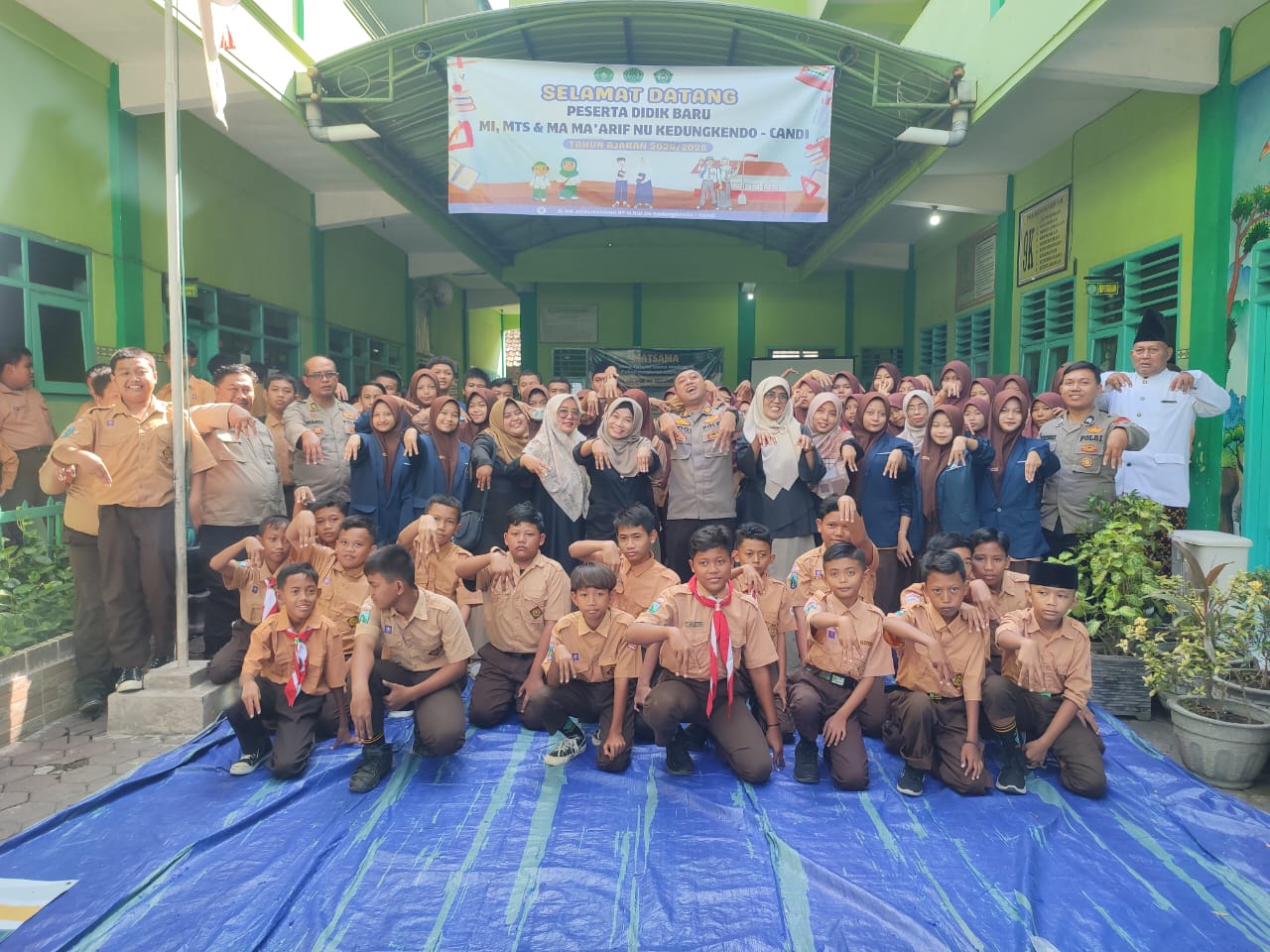 Sat Binmas Polresta Sidoarjo memberikan edukasi pencegahan kenakalan remaja dengan bijak penggunaan media sosial kepada pelajar di MTS dan MA Ma’arif, Kedung Kendo, Candi, dalam kegiatan Masa Pengenalan Lingkungan Sekolah (MPLS), pada Jumat (19/7/2024).
