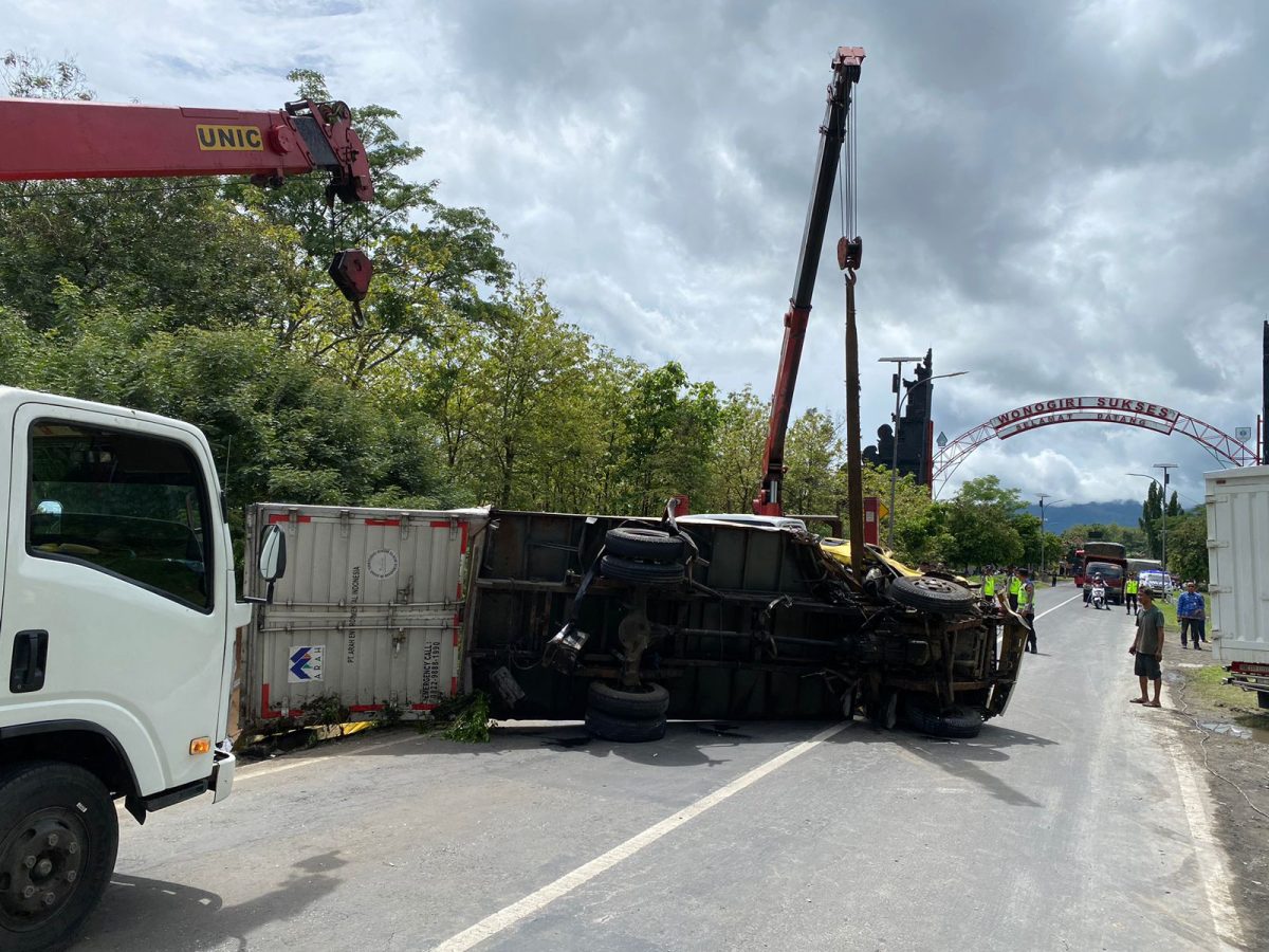 Petugas telah menangani insiden kecelakaan truk yang sempat membuat arus lalulintas macet.