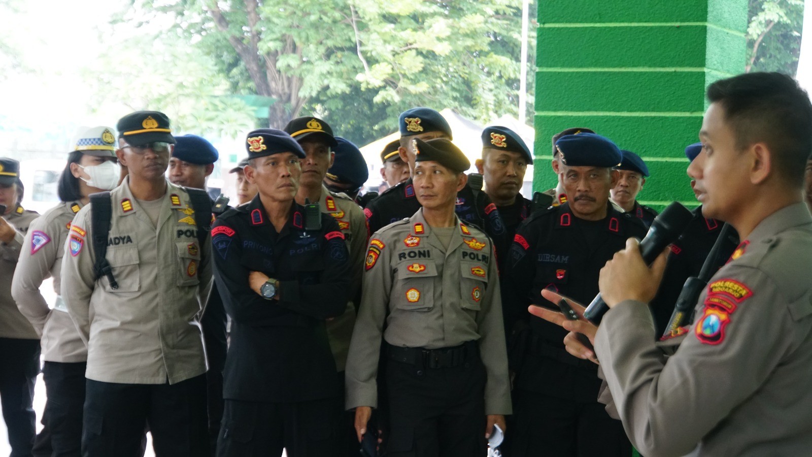 Polisi melaksanakan pemantapan tugas personel dalam mengamankan Resepsi Puncak Harlah Satu Abad Nahdlatul Ulama di Kabupaten Sidoarjo. Mulai 3-4 Februari 2023, di sejumlah titik-titik penempatan personel.