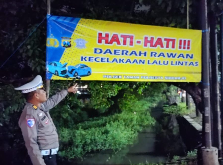 Seperti dilakukan Kanit Lantas Polsek Taman Polresta Sidoarjo AKP Sulaiman bersama anggota ILS Korcam Taman. Turun bersama memasang banner himbauan daerah rawan kecelakaan lalu lintas.