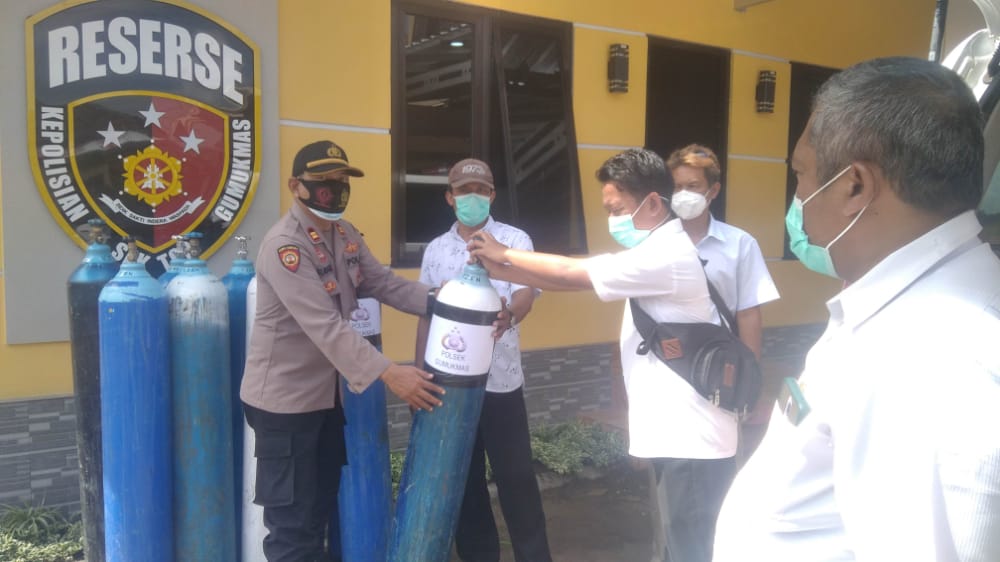 Untuk mengatasi kelangkaan oksigen bagi pasien Covid, Polsek Gumukmas menginisiasi untuk membantu pihak kesehatan dengan memberikan oksigen gratis untuk dua Puskesmas yang ada di Kecamatan Gumukmas.