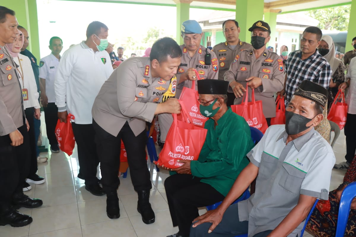 Peduli sosial dan kesehatan masyarakat, Polisi Sidoarjo gelar pengobatan dan pengecekan kesehatan gratis di Desa Kedung Rawan, Krembung, Rabu (8/3/2023).