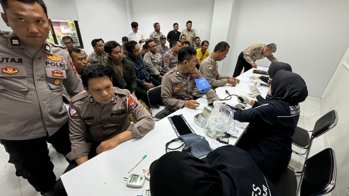 Tim Dokkes Polresta Sidoarjo melakukan pemeriksaan kesehatan para personel yang terlibat dalam Operasi Mantap Praja Semeru 2024. Ada sebanyak 735 personel Polresta Sidoarjo yang mengikuti pemeriksaan kesehatan terbagi dalam tiga gelombanh.