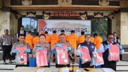 Kapolres Badung AKBP M. Arif Batubara, SH, SIK, MH, M.Tr.Opsla, didampingi Waka Polres Badung Kompol I Made Pramasetia, S.H., S.I.K, M.H., Danramil Mengwi 1611/04 Mengwi Mayor Kav. I Ketut Darmawan, Kapolsek Mengwi Kompol I Ketut Adnyana, Kasatresnarkoba AKP I Nyoman Sudarma S.H., M.H., Kanit Reskrim Polsek Mengwi AKP I Komang Juniawan, S.H., M.H., Kasipropam Res Badung AKP I Nyoman Sutanaya, SH dan Ps. Kasihumas Ipda I Putu Sukarma serta menggandeng Forkopimcam Mengwi, membeberkan hasil pengungkapan dalam konferensi pers di Lobby Polsek Mengwi Jalan I Gusti Ngurah Rai 110, Banjar Denkayu Delodan, Desa Werdi Bhuwana, Kecamatan Mengwi, Kabupaten Badung, Bali, Selasa (18/2/25 ).