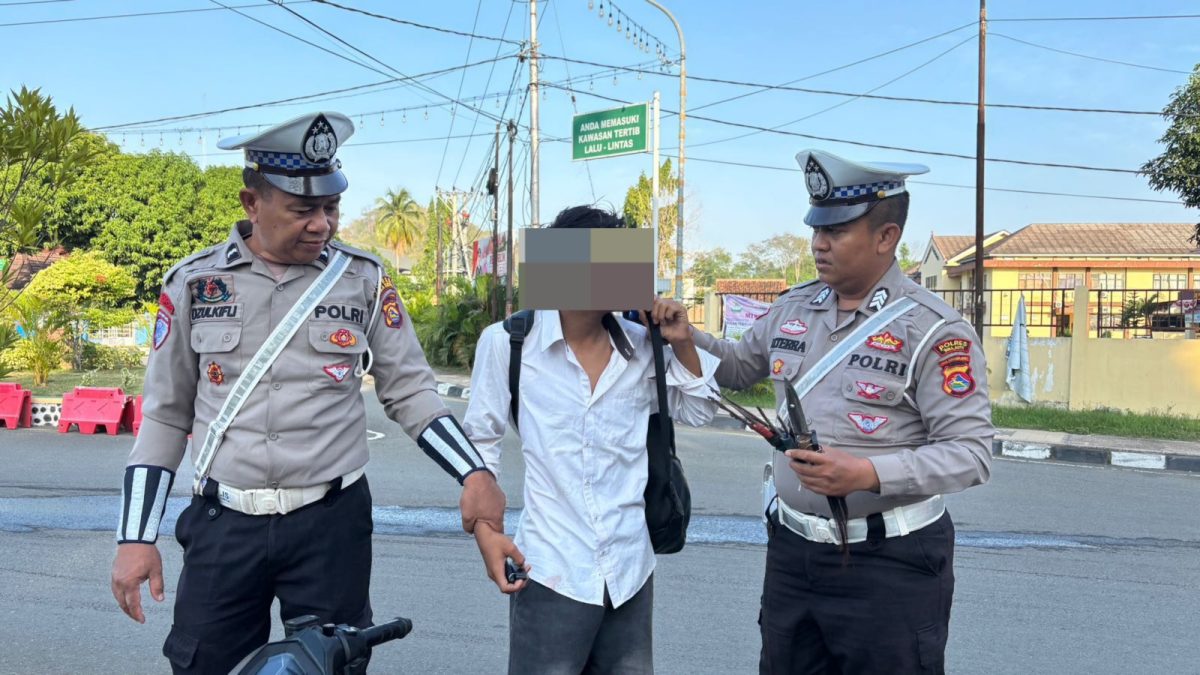 Personel Satuan Lalu Lintas (Satlantas) Kepolisian Resor (Polres) Bima Kota, Nusa Tenggara Barat (NTB) berhasil mengamankan seorang pengendara sepeda motor yang kedapatan membawa panah dan senjata tajam (sajam) saat melaksanakan kegiatan Rawan Pagi di kawasan Lampu Merah Simpang Empat Gunung Dua, Sabtu (27/9/2025) sekitar pukul 07.15 Wita.
