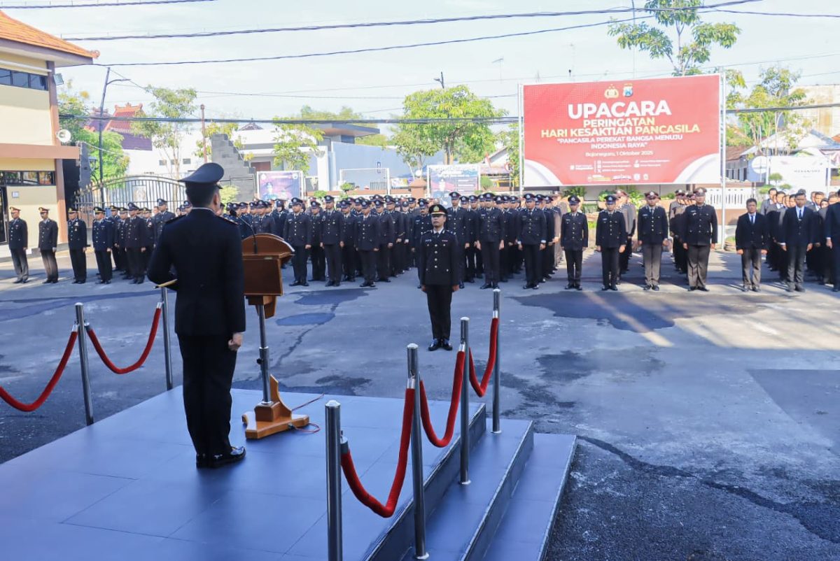 Polres Bojonegoro menggelar upacara peringatan Hari Kesaktian Pancasila di halaman Mapolres Bojonegoro, Rabu (1/10/2025). Upacara berlangsung khidmat dengan diikuti pejabat utama (PJU), Kapolsek jajaran, serta seluruh personel Polres Bojonegoro.