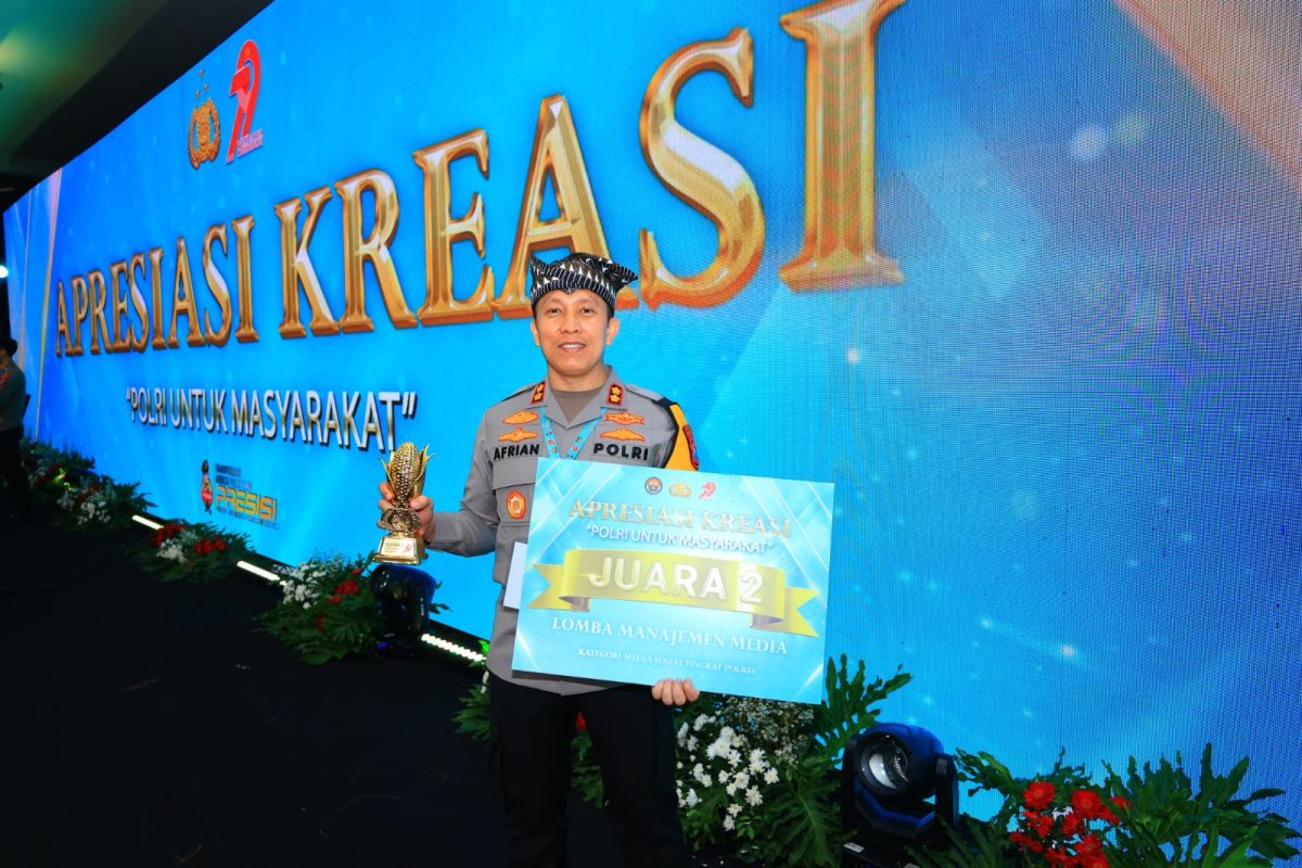 Penghargaan tersebut diserahkan langsung oleh Kapolri Jenderal Polisi Drs. Listyo Sigit Prabowo, M.Si kepada Kapolres Bojonegoro AKBP Afrian Satya Permadi, S.H., S.I.K., M.I.K dalam acara Awarding Day Apresiasi Kreasi Polri Untuk Masyarakat yang berlangsung di Auditorium STIK-PTIK Lemdiklat Polri, Jakarta Selatan, Selasa malam (22/7/2025).