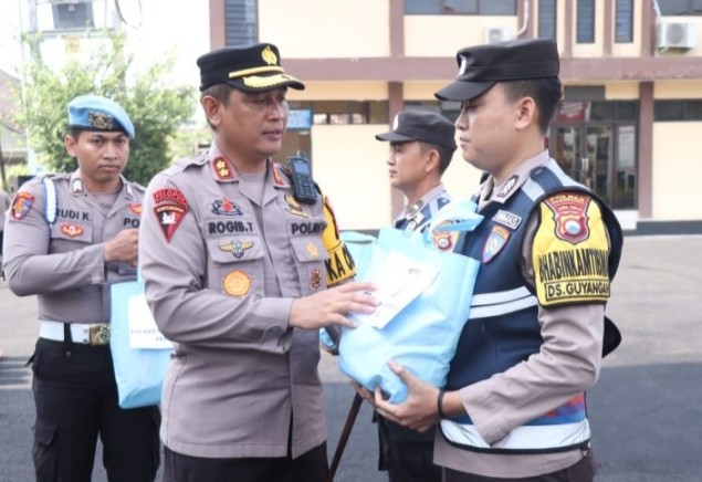 Kapolres Bojonegoro, AKBP Rogib Triyanto, SIK melepas personel Bhabinkamtibmas yang membawa paket bantuan sosial (bansos) sekaligus menyalurkan kepada warga binaannya yang kurang mampu diwilayahnya.