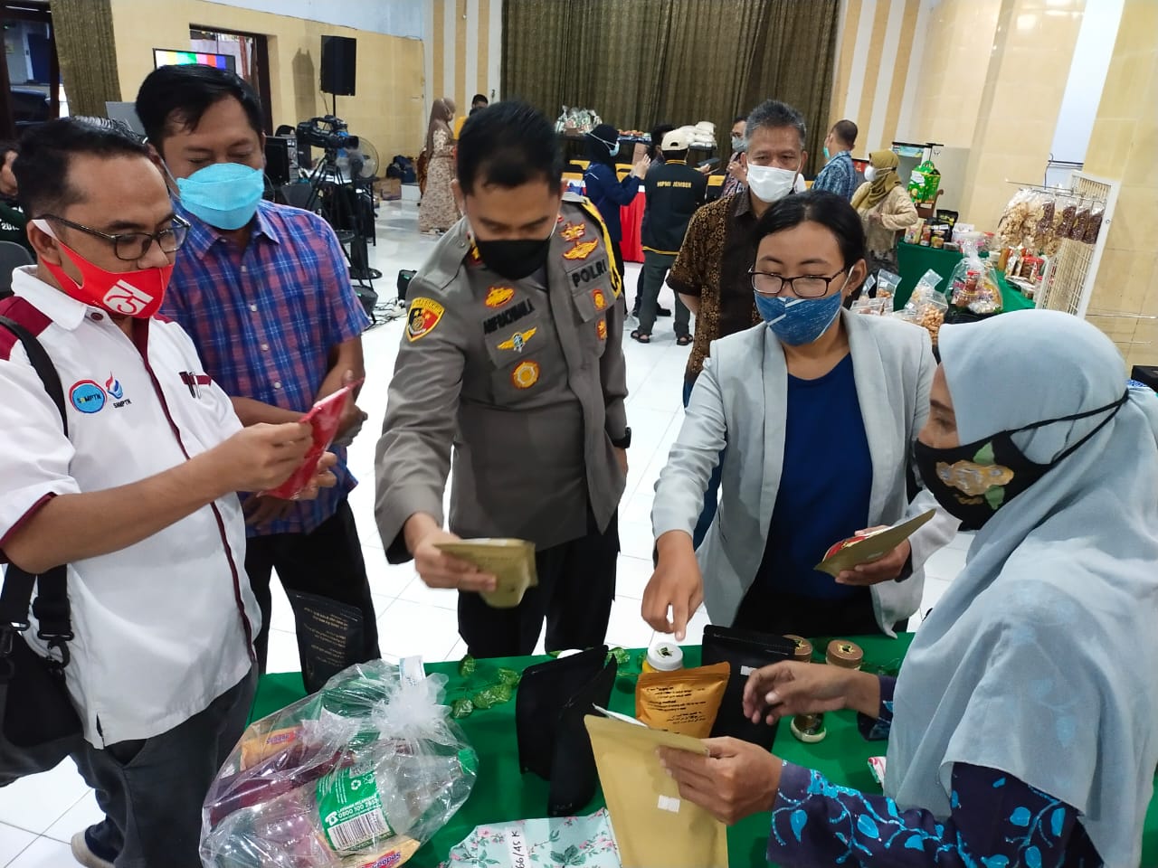 Tampak hadir dalam kegiatan ada AKBP Arif Rachman Arifin, SIK, MH. (Kapolres Jember), Ahmad Halim, S.Sos (Wakil Ketua DPRD Kab. Jember), Tri Soebijantoro (Disperindag Jember, DEDI M NurahmadiI (Asisten II Pemkab Jember), Arismays Parahita (Kadiskop UMKM).