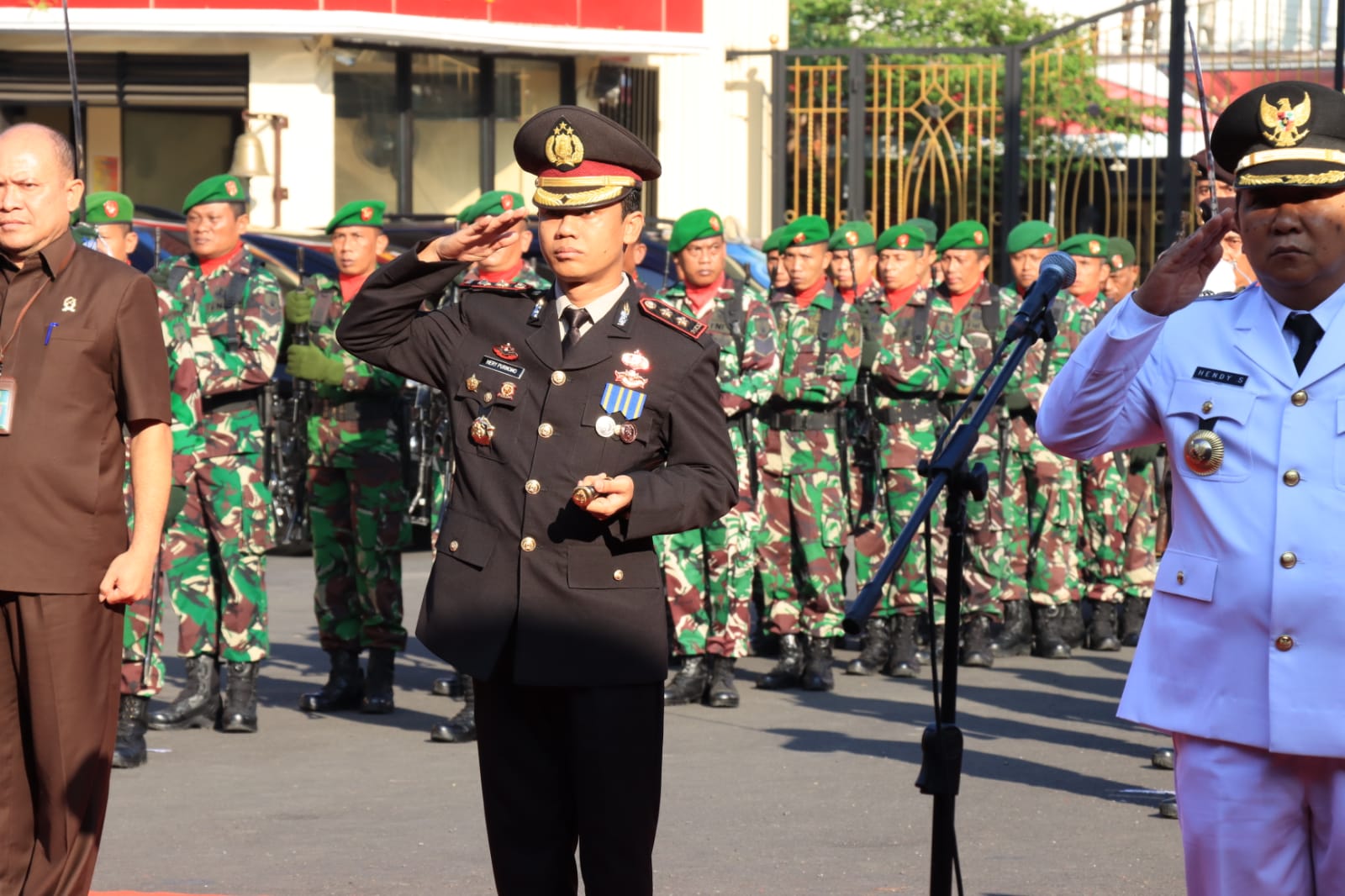 Upacara secara virtual yang digelar di halaman Mako Polres Jember ini dipimpin oleh Bupati Jember H. Hendy Siswanto dan diikuti oleh Kapolres Jember AKBP Hery Purnomo, Dandim 0824 Jember Letkol Inf. Batara C Pangaribuan S.E., Kajari Jember I Nyoman Sucitrawan,S.H., M.H., Ketua PN Jember Dr. I Wayan Gede Rumega SH.MH. dan Ketua DPRD Kab.Jember