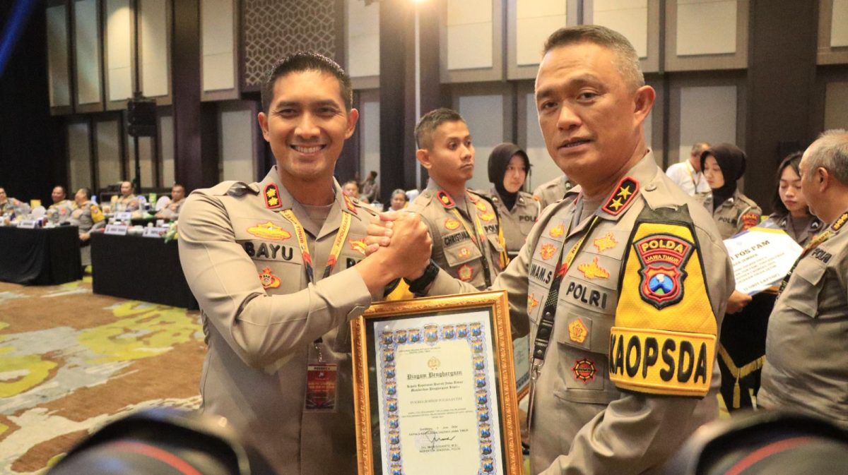 Penerimaan penghargaan tersebut diserahkan langsung oleh Kapolda Jatim Irjen Pol Drs Imam Sugianto,M.Si,dan diterima Kapolres Jember AKBP Bayu Pratama Gubunagi SIK M.Si, dalam acara Anev Sitkamtibmas th 2024 serta kesiapan Operasi Mantab Praja Semeru 2024 di Giri Loka Ballroom Aston Hotel,
