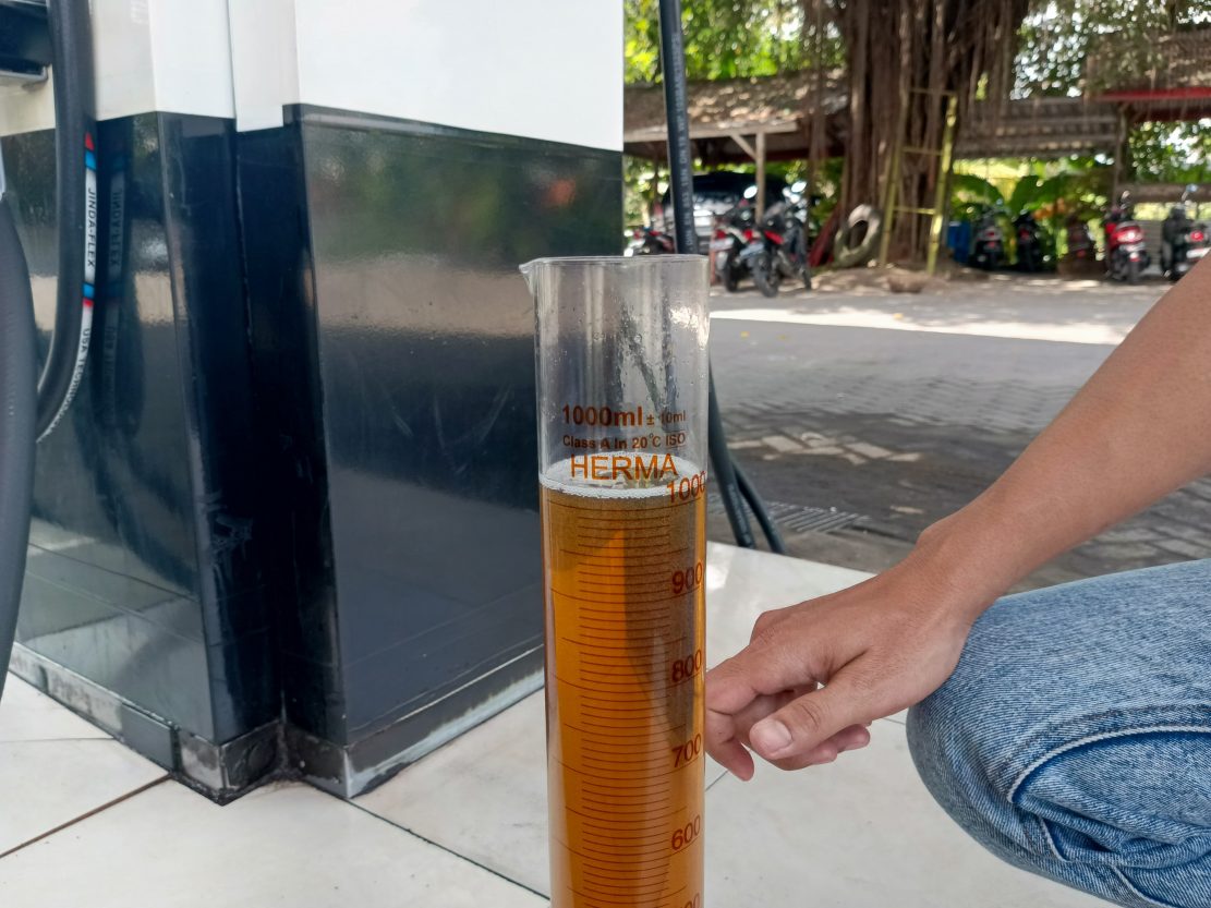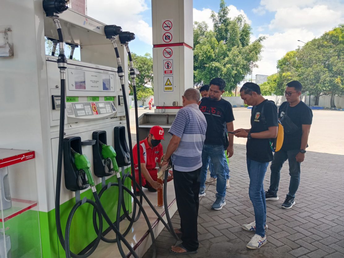 “Juga pengecekan dari alat dispenser yang ada di SPBU. Untuk takarannya menggunakan gelas ukur, kami pastikan ukurannya pas dengan standar pengecekan ini, harus pas per liternya,” imbuhnya.