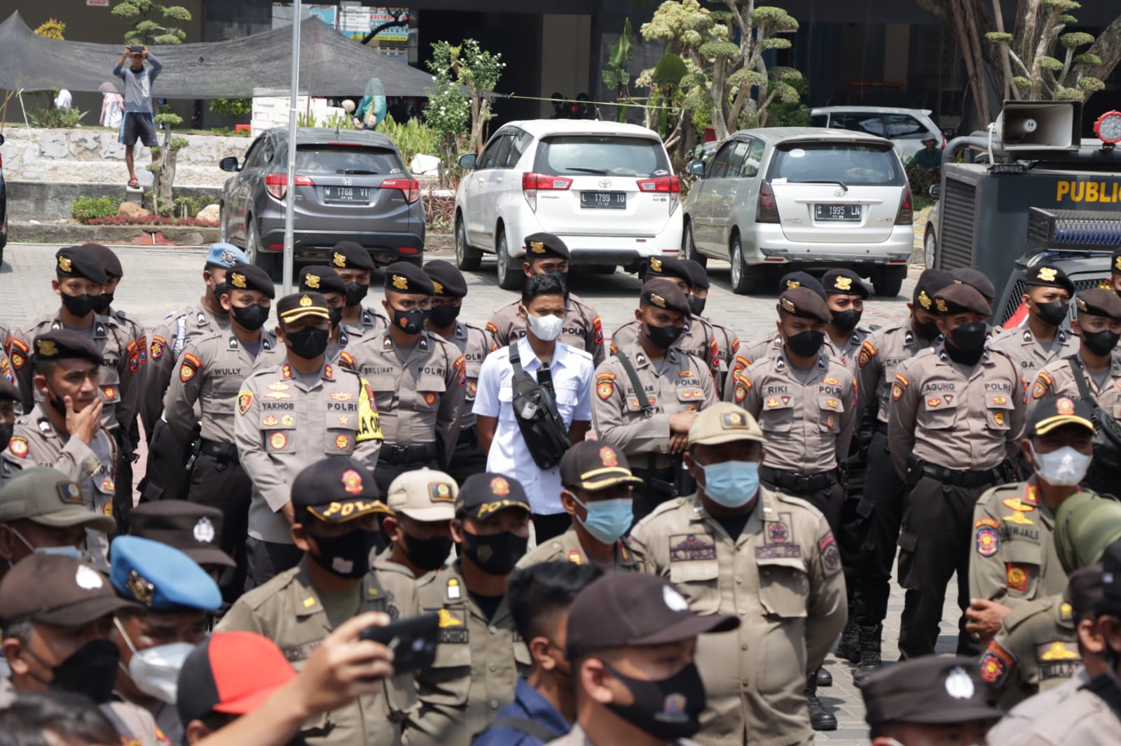 Sebelum Pengunjuk rasa menggelar aksinya, Polres Lamongan terlebih dulu menggelar Apel Pengamanan yang dimpin langsung oleh Kapolres Lamongan AKBP YAKHOB SILVANA DELARESKHA, S.I.K.,M.Si., dengan mengerahkan Anggota mulai dari Sabhara hingga Polwan sebagai Negosiator.