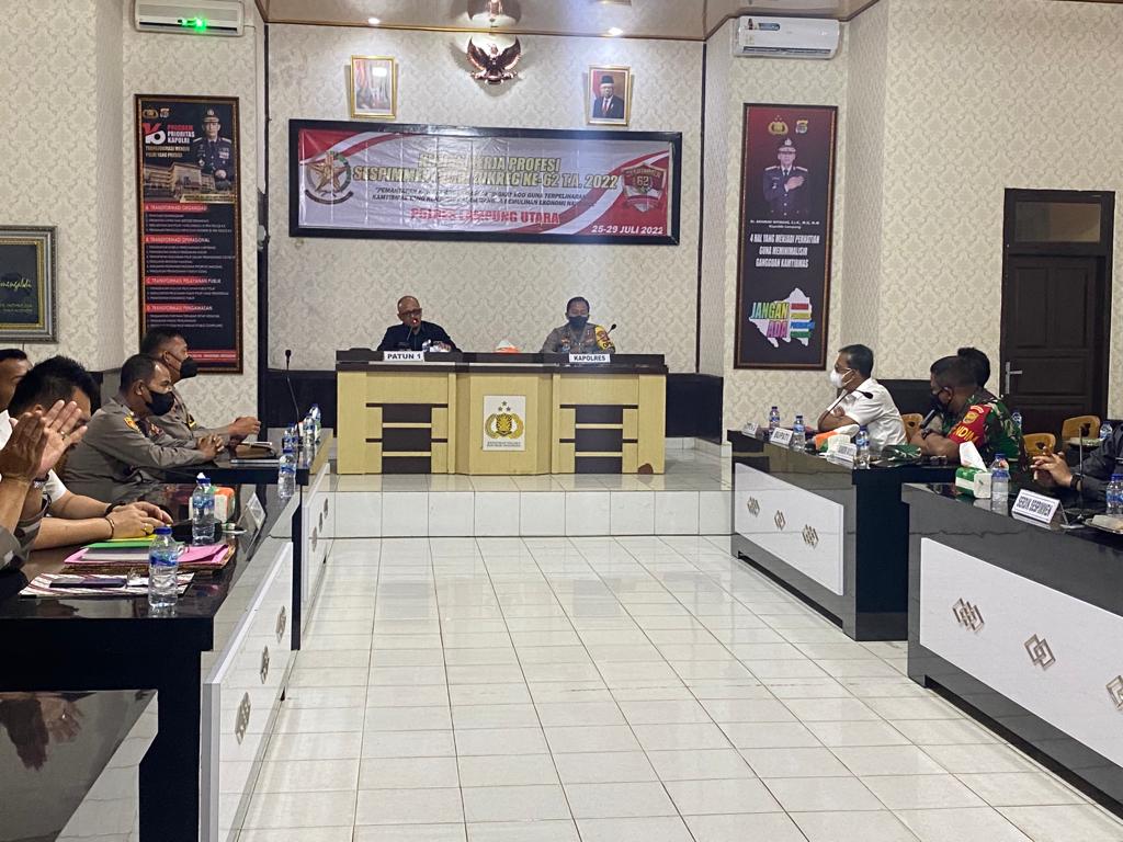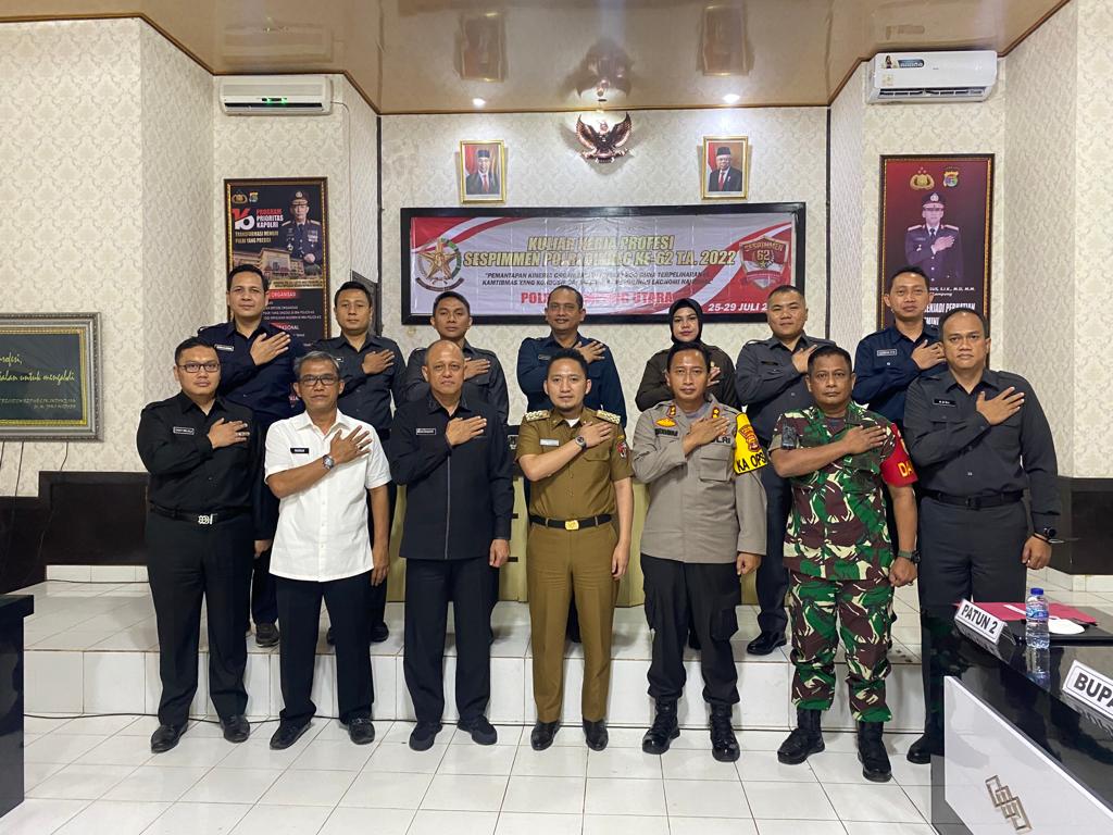 Polres Lampung Utara melaksanakan kegiatan penerimaan Kuliah Kerja Profesi (KKP) Serdik Sespimen Polri Dikreg ke-62 Tahun 2022 sebanyak 9 orang dan 2 orang pendamping bertempat di Aula Rekonfu Polres setempat. Senin, (26/07/2022).