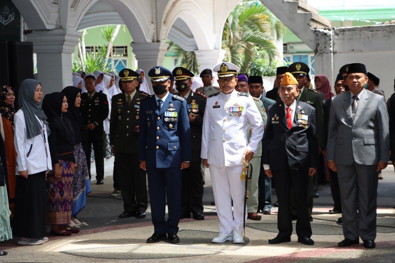 Seluruh peserta upacara mengheningkan cipta menghadap laut dermaga Labuhan Haji untuk mengenang jasa para pahlawan dan dilanjutkan dengan pelarungan oleh inspektur upacara.