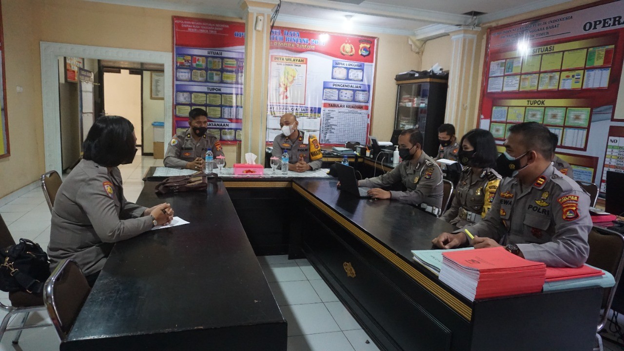 Wakapolres Lotim mengucapkan selamat datang kepada tim wasops dan menyampaikan permintaan maaf Kapolres Lotim tidak bisa menyambut kedatangan tim wasops dikarenakan melakukan pengecekan giat vaksinasi yang menjadi atensi Bapak Kapolda NTB.