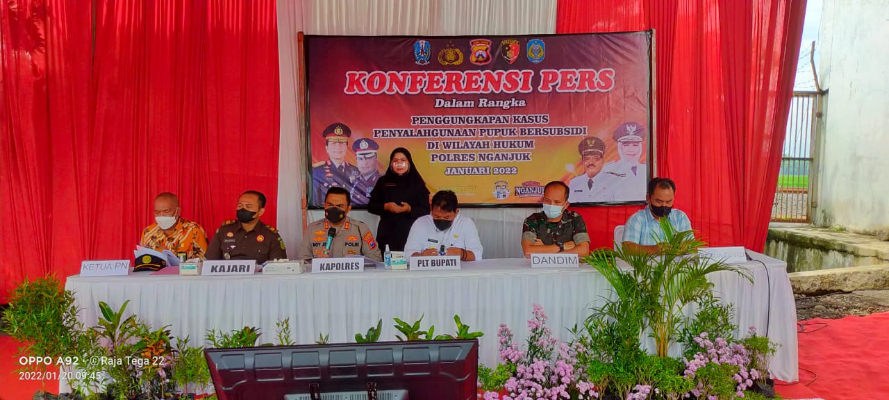 Sebelumnya, jajaran Polres Nganjuk berhasil mengungkap jaringan penyalahgunaan pupuk bersubsidi di wilayah Kabupaten Nganjuk dan mengamankan tiga tersangka dari dua TKP terpisah. Adapun total barang bukti yang berhasil diamankan mencapai 111,5 ton pupuk bersubsidi jenis Urea, ZA Phonska, dan SP36.