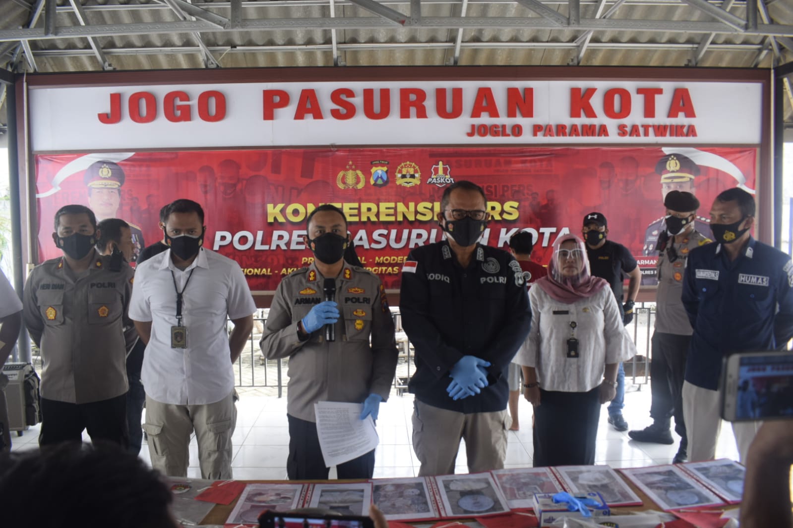 Polres Pasuruan Kota tetapkan 4 tersangka, perakit dan penjual bom ikan yang telah menewaskan dua orang warga Pasuruan. Hal ini disampaikan Kapolres Pasuruan Kota AKBP Arman, bersama Kabidlabfor Polda Jatim Kombes Pol Sodiq Pratomo, dan Kasat Reskrim serta Kasi Humas Polres Pasuruan Kota, saat jumpa pers, pada Rabu (15/9/2021), di Joglo Parama Satwika Polres Pasuruan Kota.