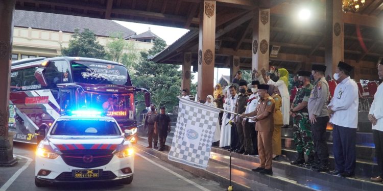Kapolres Ponorogo AKBP Catur Cahyono Wibowo SIK., MH. Hadiri pelepasan keberangkatan calon jamaah haji (CJH) Th 2022 Kabupaten Ponorogo di Pendopo Kab. Ponorogo jl Alon Alon Utara. Senin, (06/06/2022) yang dihadiri 1000 orang.