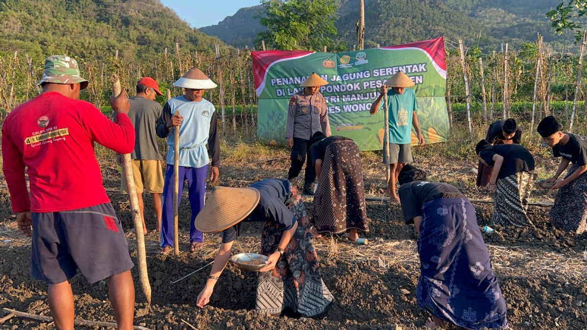 Polres Wonogiri menggelar kegiatan penanaman jagung serentak di lahan pondok pesantren Santri Manjung, Kecamatan Wonogiri, Kabupaten Wonogiri. Kegiatan ini merupakan bagian dari upaya Polri untuk mendukung program ketahanan pangan sekaligus mempererat hubungan dengan masyarakat, khususnya para santri.