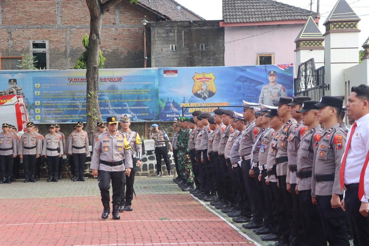 Apel dihadiri unsur Forkopimda Kabupaten Wonogiri, antara lain Bupati Wonogiri Setyo Sukarno, Dandim 0728/Wonogiri yang diwakili Kasdim Mayor Inf Suwandi, Kepala Kejaksaan Negeri Wonogiri Hery Somantri, S.H., M.H., Sekda Wonogiri F.X. Pranata, A.P., M.Hum., serta para pimpinan OPD dan pejabat utama Polres Wonogiri.